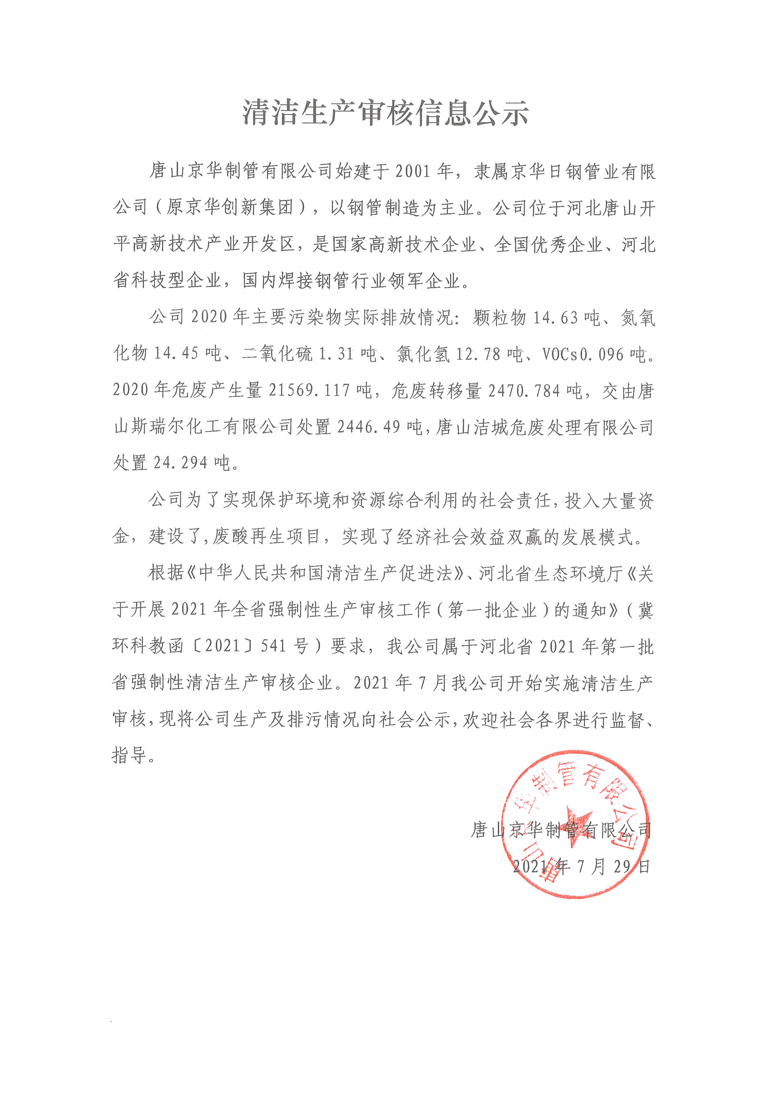 欧冠平台清洁生产审核信息公示